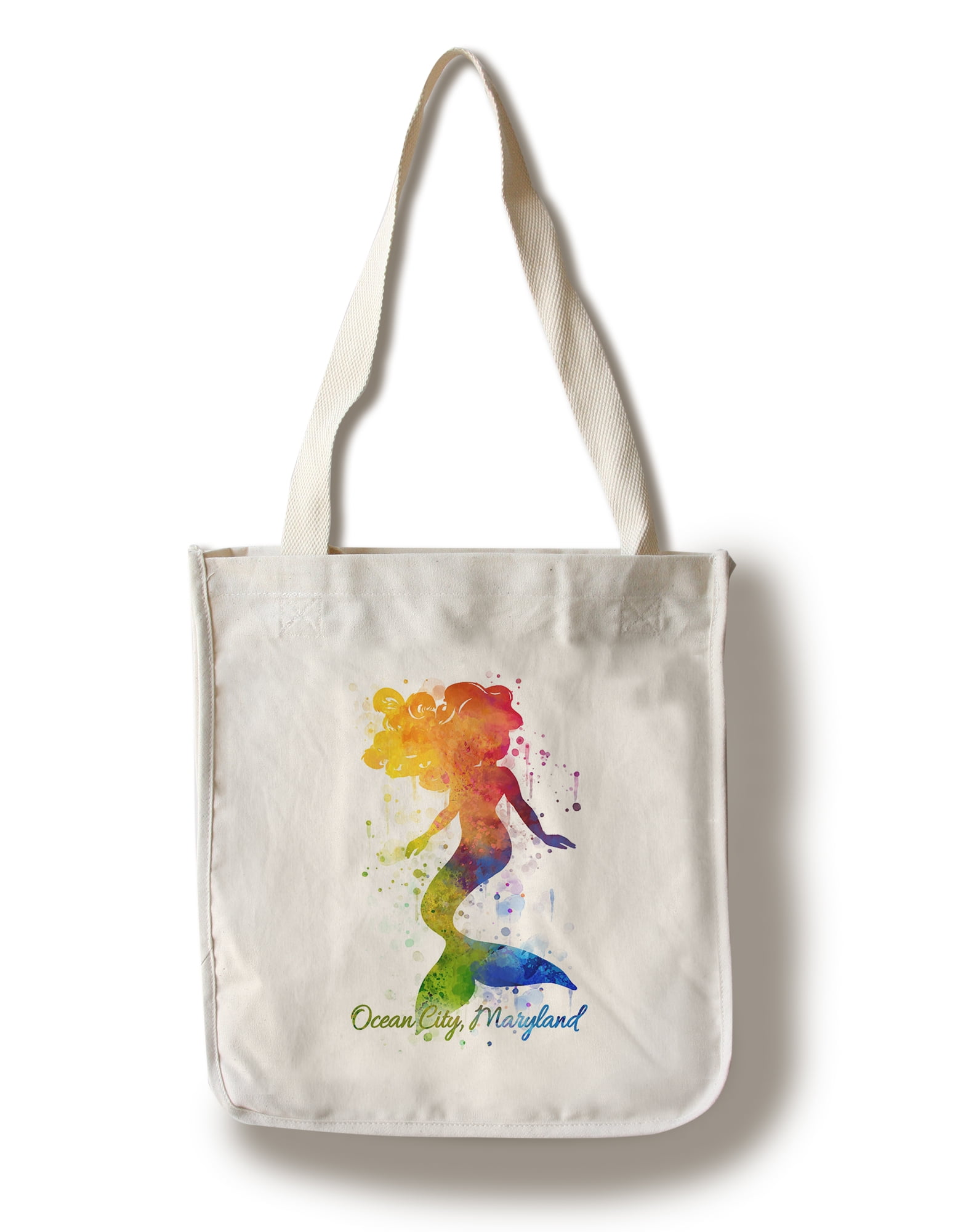 Ocean City Maryland Mermaid Silhouette Rainbow Watercolor Lantern Press Artwork 100 Cotton Tote Bag Reusable Walmart Com